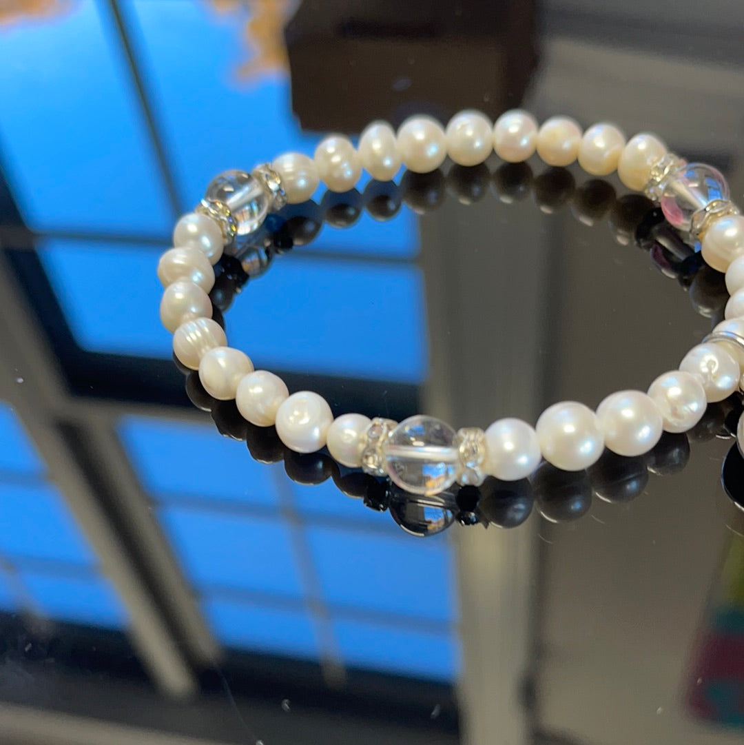 Materials: genuine pearls, black onyx, red coral, quartz crystal, metal charms